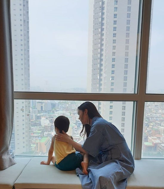 '하하♥' 별, 고층아파트 멋진 뷰 즐기는 모자 "엄마가 더 재밌어" [★해시태그]