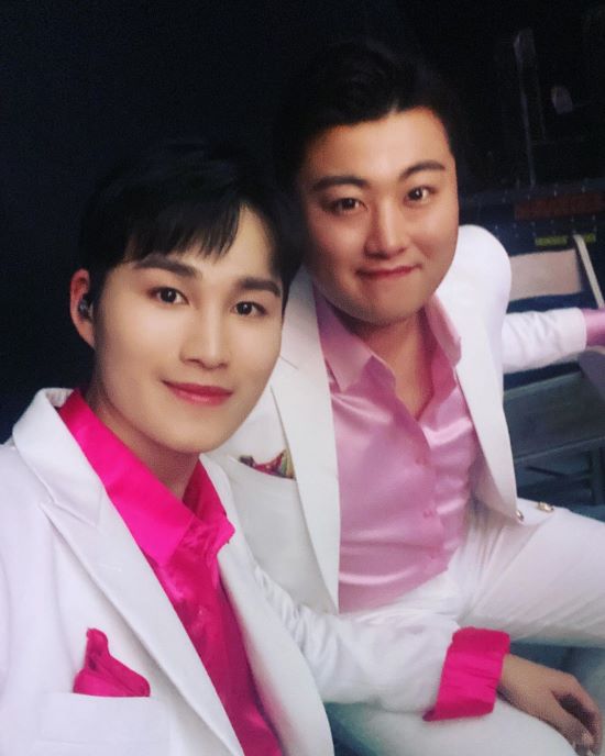 공개된 사진 속 김호중은 김희재와 함께 미소 짓고 있다. 두 사람의 훈훈한 비주얼과 다정한 분위기가 시선을 사로잡는다.
