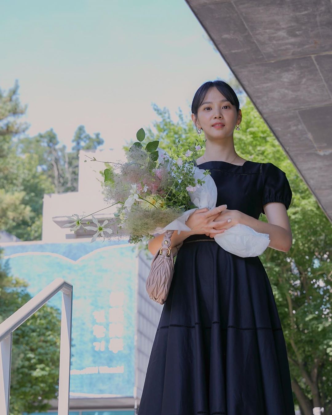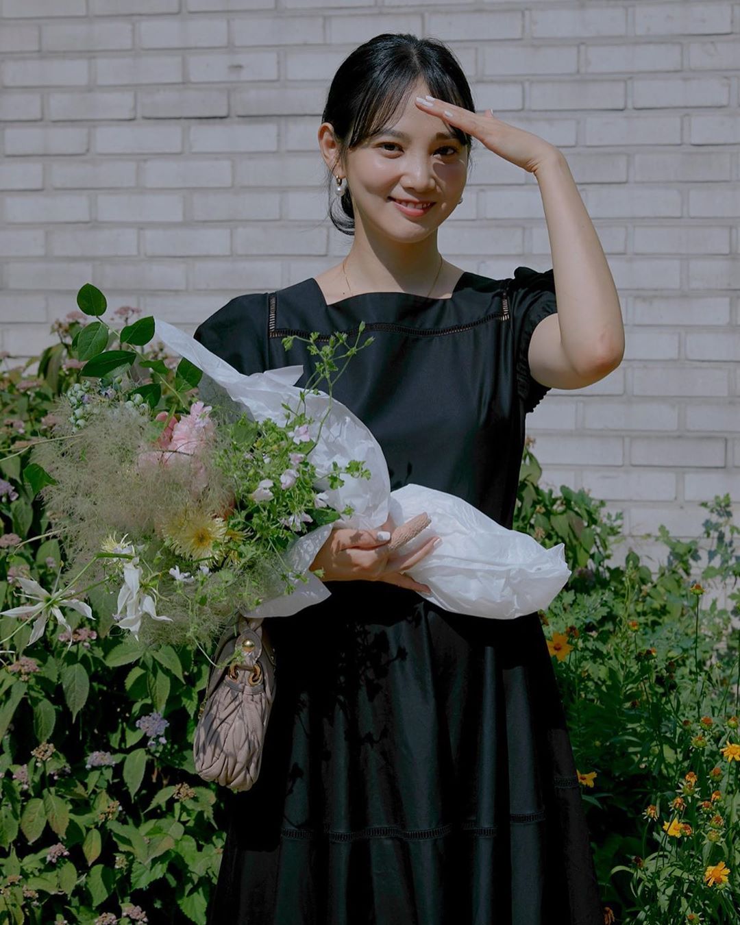 공개된 사진 속 윤승아는 스퀘어넥의 블랙 원피스를 입은 채 꽃다발을 품에 안고 있다. 사랑스러운 미소로 카메라를 응시하고 있는 윤승아의 모습이 보는 이들의 시선을 사로잡는다.