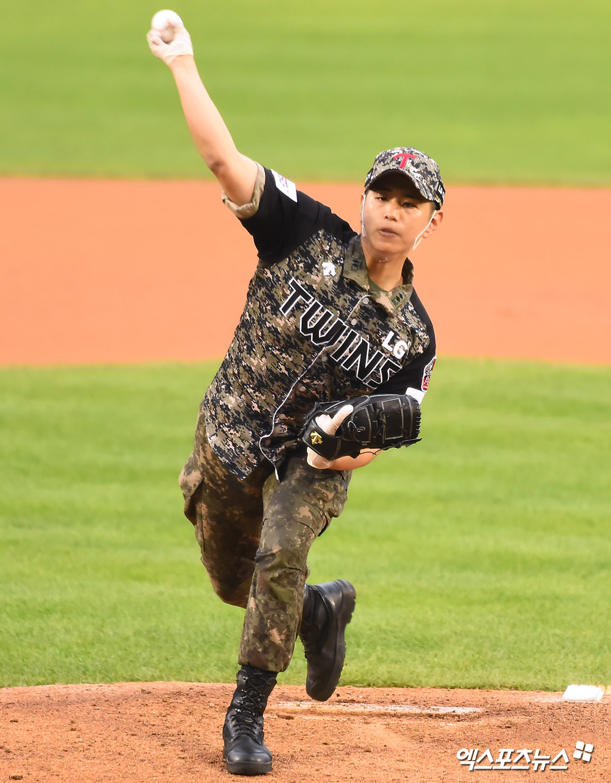 [엑스포츠뉴스 잠실, 윤다희 기자] 25일 오후 서울 송파구 잠실야구장에서 열린 ‘2020 신한은행 SOL KBO 리그’ 키움 히어로즈와 LG 트윈스의 더블헤더 2차전 경기에 앞서 6.25전쟁 참전유공자 서갑성 옹(95세)과 육군 5사단 소속 소대장 배홍성 중위가 시구를 선보이고 있다.