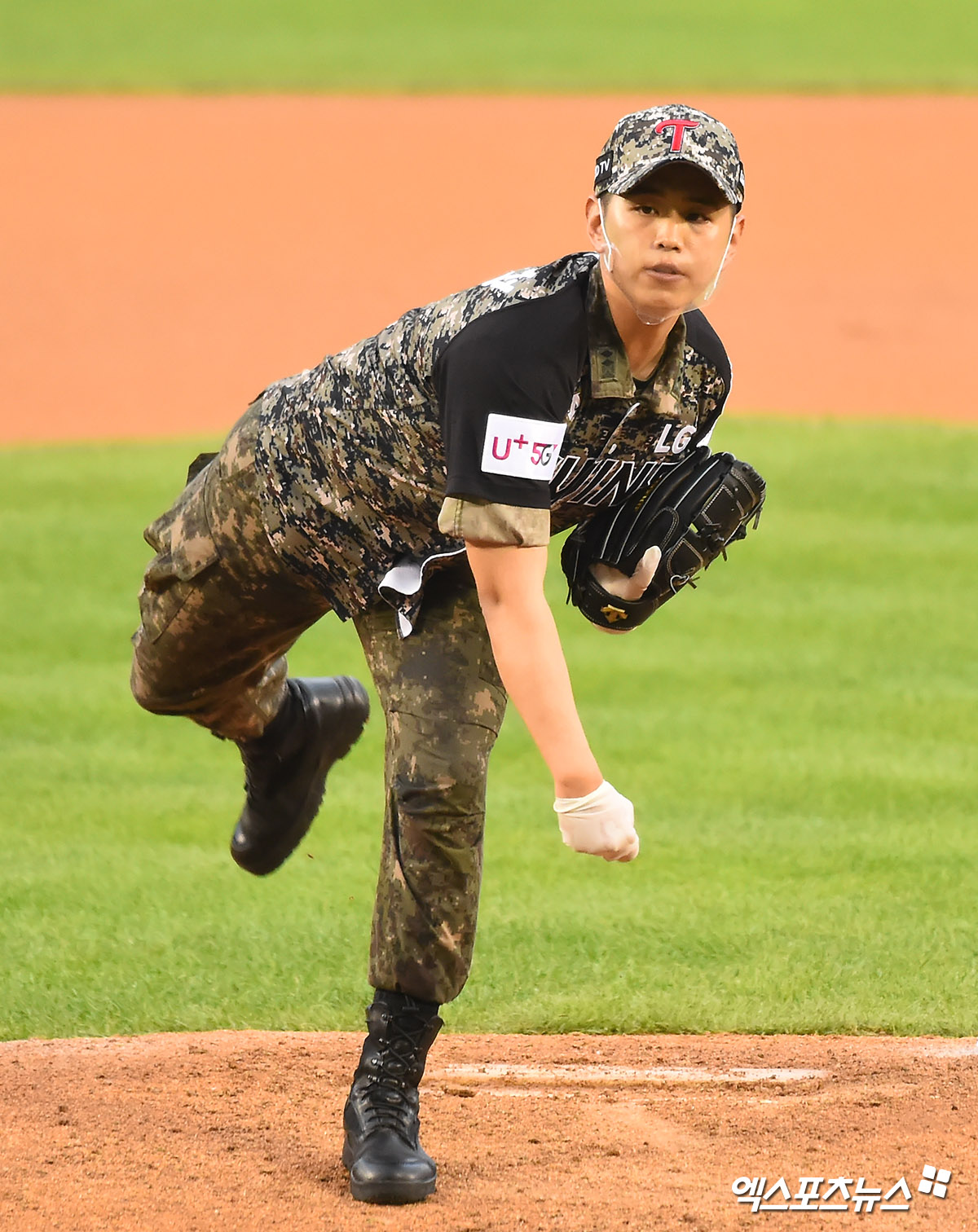 [엑스포츠뉴스 잠실, 윤다희 기자] 25일 오후 서울 송파구 잠실야구장에서 열린 ‘2020 신한은행 SOL KBO 리그’ 키움 히어로즈와 LG 트윈스의 더블헤더 2차전 경기에 앞서 6.25전쟁 참전유공자 서갑성 옹(95세)과 육군 5사단 소속 소대장 배홍성 중위가 시구를 선보이고 있다.