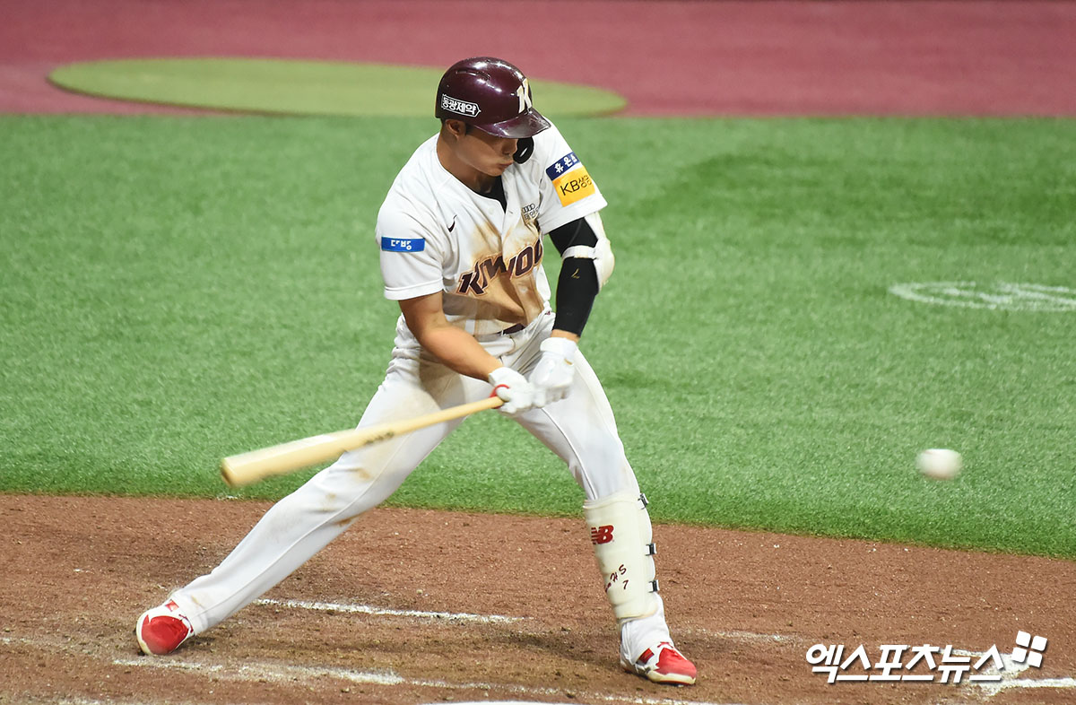 [엑스포츠뉴스 고척, 윤다희 기자] 2일 오후 서울 구로구 고척스카이돔에서 열린 ‘2020 신한은행 SOL KBO 리그’ 두산 베어스와 키움 히어로즈의 경기, 5회말 1사 2,3루 키움 김하성이 2타점 적시타를 날리고 있다.