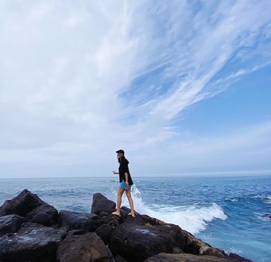 진재영은 5일 인스타그램에 "오늘 돌고래떼가 바위 앞까지 다가와 수영을 하며 지나간다. 정말 봐도봐도 신기한 jeju"라는 글과 함께 사진을 올렸다.
