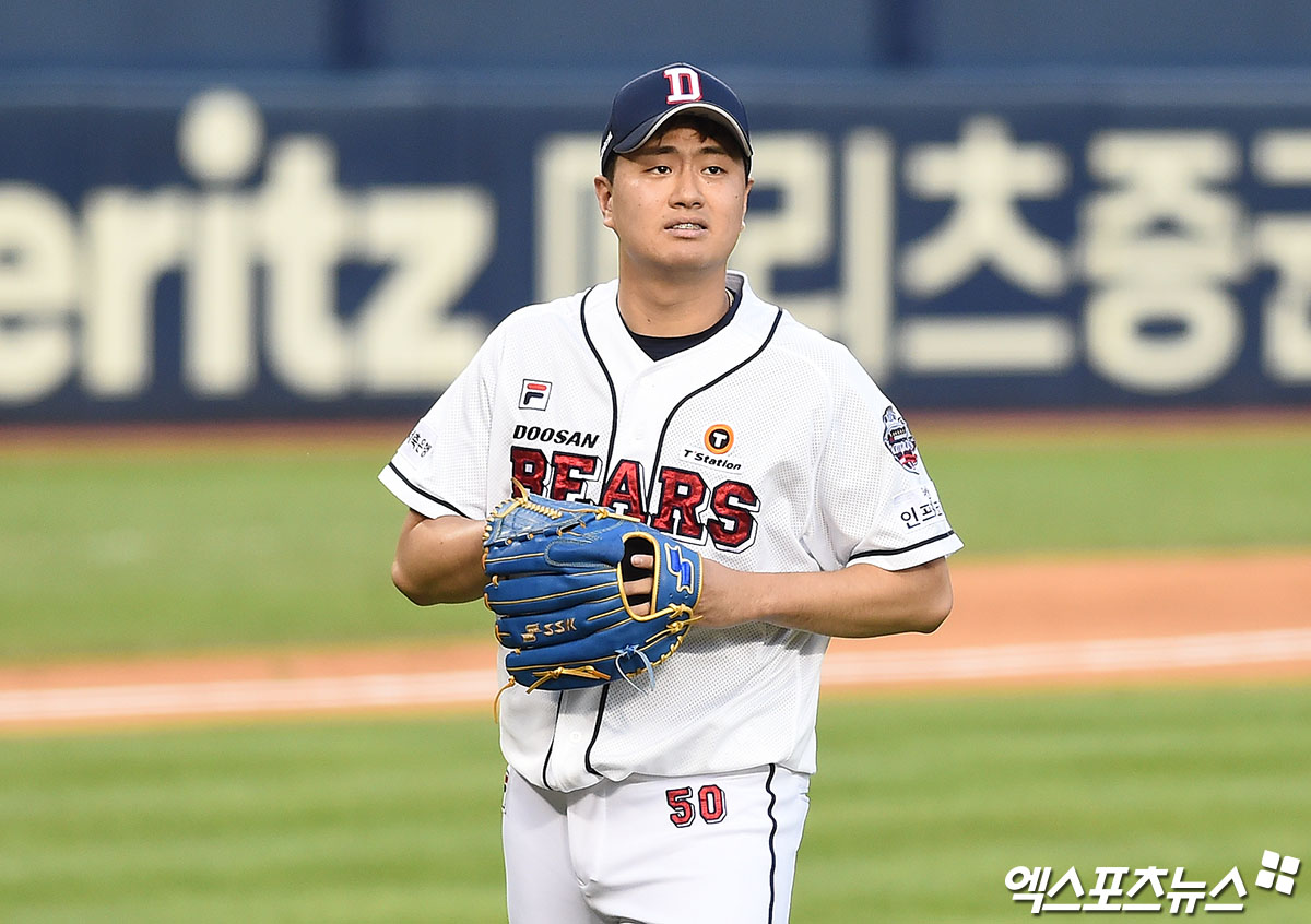 [엑스포츠뉴스 잠실, 박지영 기자] 7일 오후 서울 송파구 잠실야구장에서 열린 '2020 신한은행 SOL KBO리그' LG 트윈스와 두산 베어스의 경기, 4회초 종료 후 두산 선발투수 이영하가 더그아웃으로 향하고 있다.