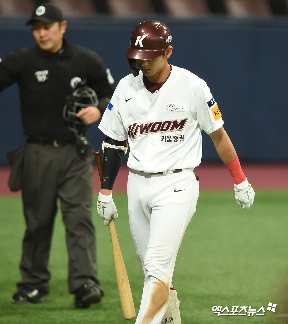 [엑스포츠뉴스 고척, 김한준 기자] 7일 오후 서울 구로구 고척스카이돔에서 열린 ‘2020 신한은행 SOL KBO리그’ 삼성 라이온즈와 키움 히어로즈의 경기, 8회말 2사 1루 키움 이정후가 헛스윙 삼진을 당한 후 아쉬워하고 있다.