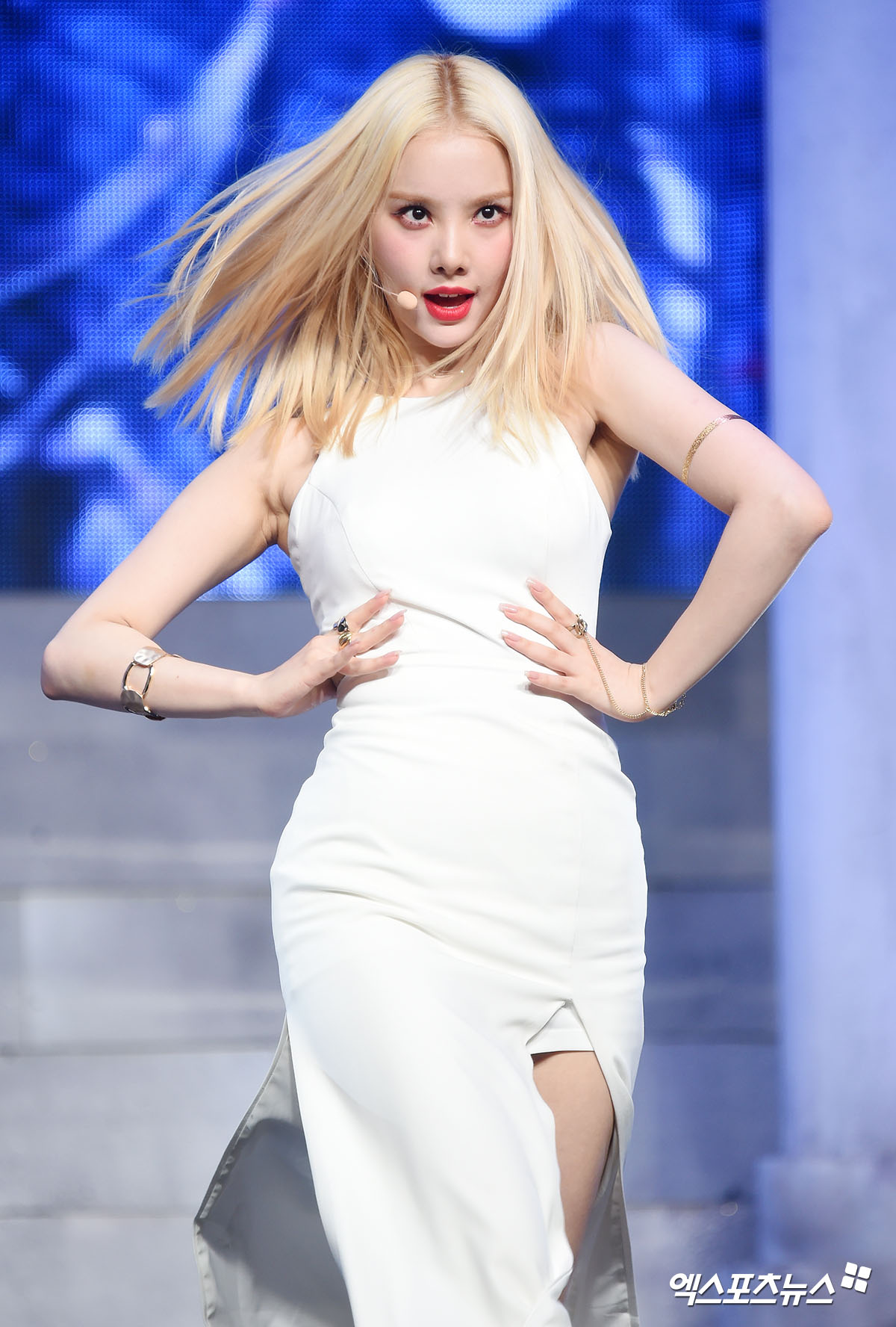 이날 미디어 쇼케이스에 참석한 여자친구 은하가 멋진 공연을 선보이고 있다.