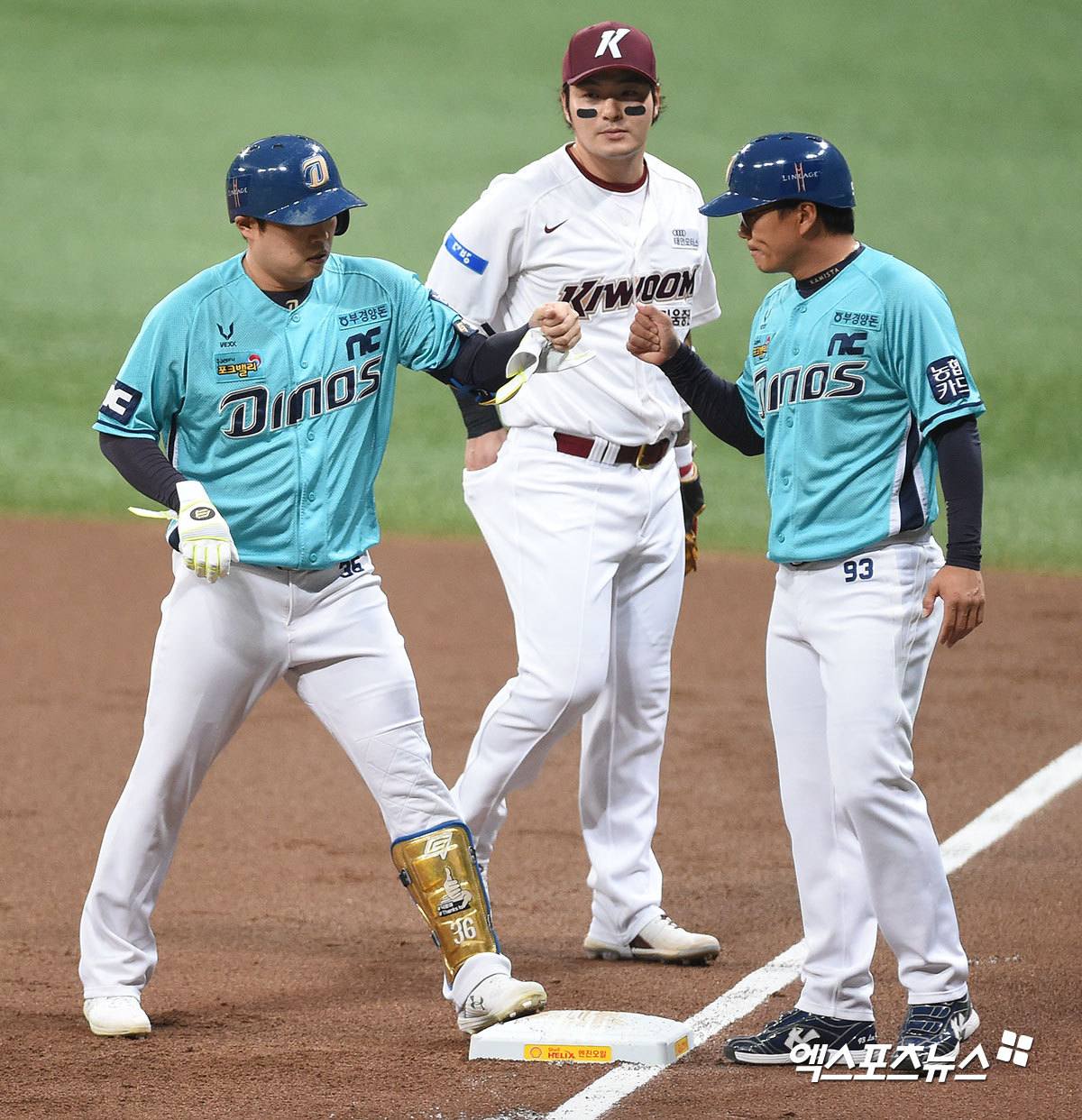 [엑스포츠뉴스 고척, 김한준 기자] 14일 오후 서울 구로구 고척스카이돔에서 열린 ‘2020 신한은행 SOL KBO리그’ NC 다이노스와 키움 히어로즈의 경기, 1회초 2사 NC 권희동이 좌전안타를 날린 후 기뻐하고 있다.