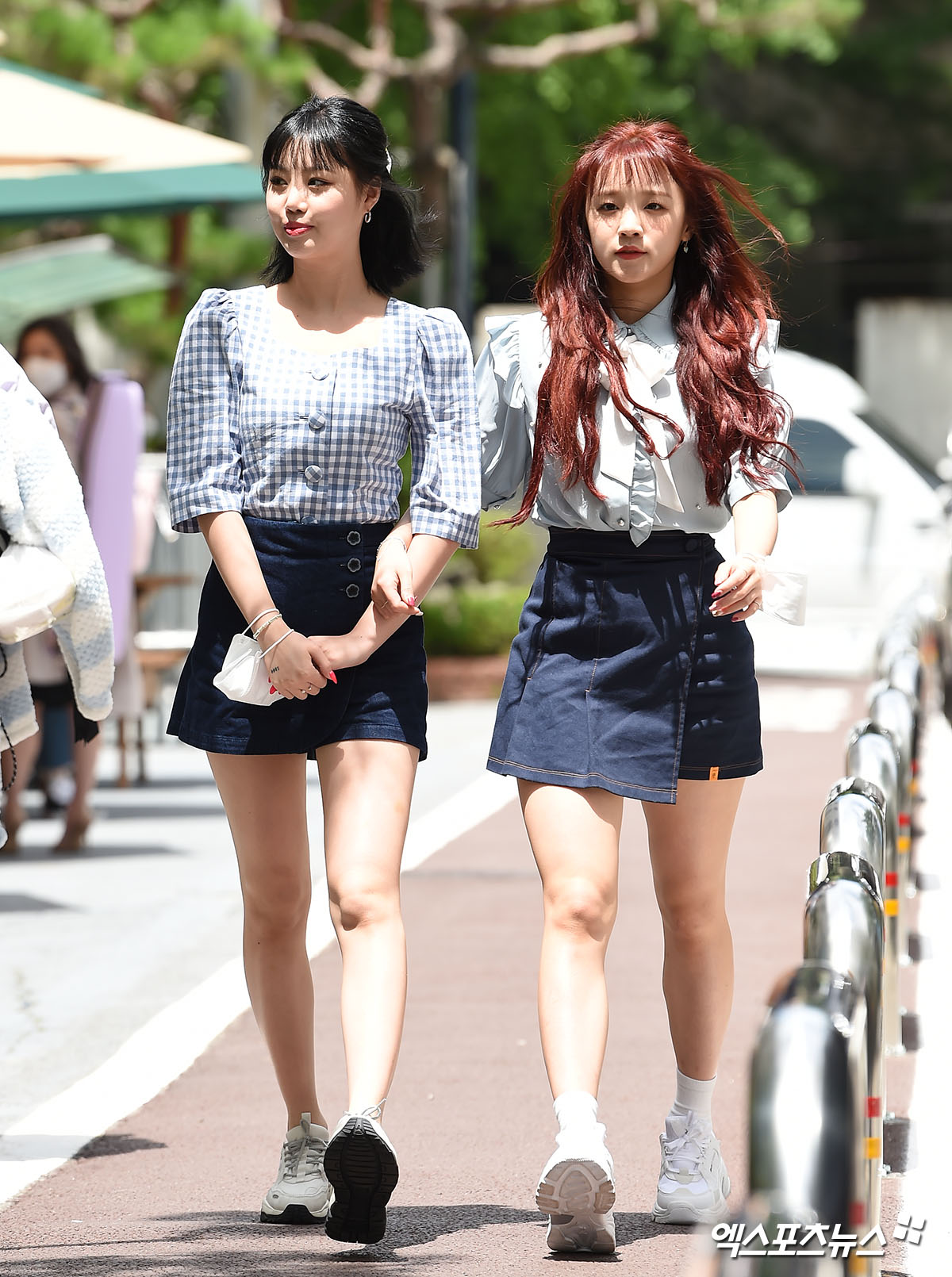 [엑스포츠뉴스 윤다희 기자] 15일 오후 서울 여의도동 KBS 신관에서 열린 KBS 새 예능프로그램 ‘퀴즈 위의 아이돌’ 녹화에 참석한 그룹 (여자)아이들 수진, 우기가 출근하고 있다.