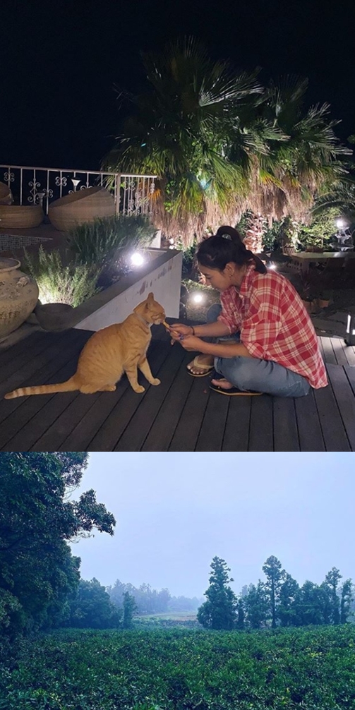 그런가 하면 "이 작은 생명체가 나를 기다리고 있었다는 게 너무나 감동이다. 제주에서 제일 친한 내 친구. 우리의 불토"라는 글과 함께 사진을 올렸다.