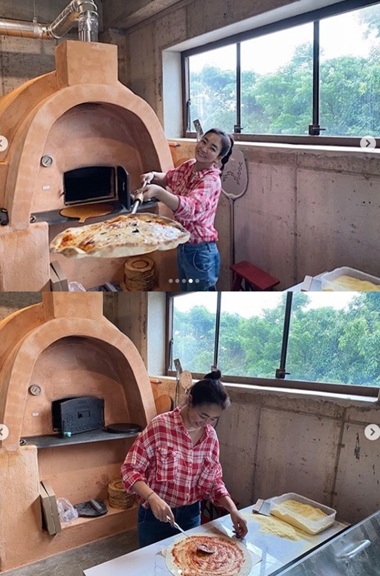 진재영은 18일 인스타그램에 "피자집 주말 알바. 먹어본 중 가장 맛있는 피자 맛집. 못하는 게 없는 대표님. 우리 인테리어 대표님한테 피자 맹그는 거 배웠어용"라는 글과 함꼐 피자를 굽는 모습을 공개했다.