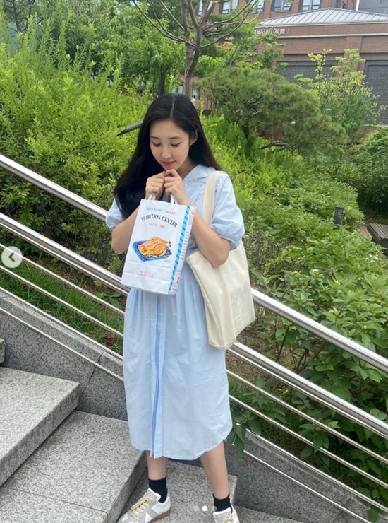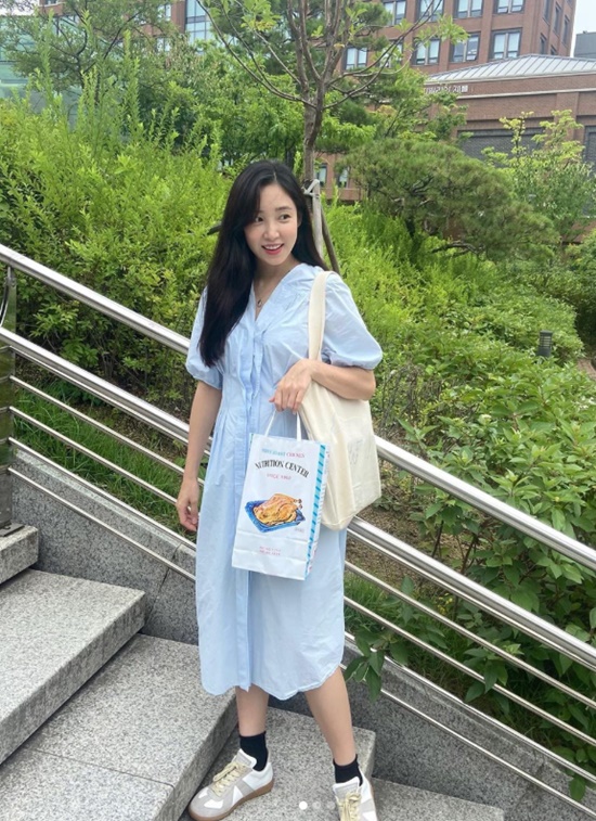 공개된 사진 속 최희는 하늘색 원피스를 입고 싱그러운 미소를 짓고 있다. 임신 중인 최희의 살짝 나온 D라인이 돋보이는 가운데, 여전한 청순 미모도 시선을 사로잡는다.