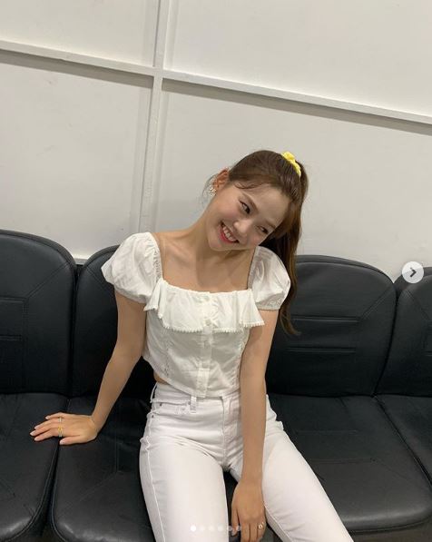 공개된 사진 속 효정은 의자에 앉아 환하게 미소 지으며 어딘가를 응시하고 있다. 효정은 흰색 블라우스와 바지로 상큼하고 청순한 매력을 더했다.