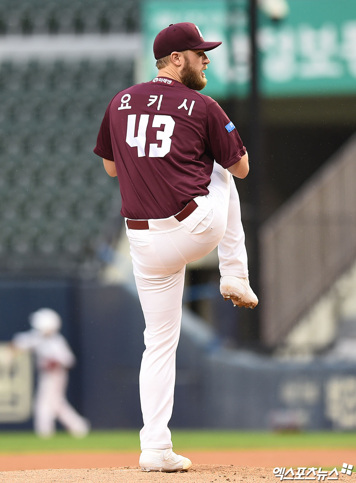 [엑스포츠뉴스 잠실, 박지영 기자] 28일 오후 서울 송파구 잠실야구장에서 열린 '2020 신한은행 SOL KBO리그' 키움 히어로즈와 두산 베어스의 경기, 1회말 키움 선발투수 요키시가 역투하고 있다.