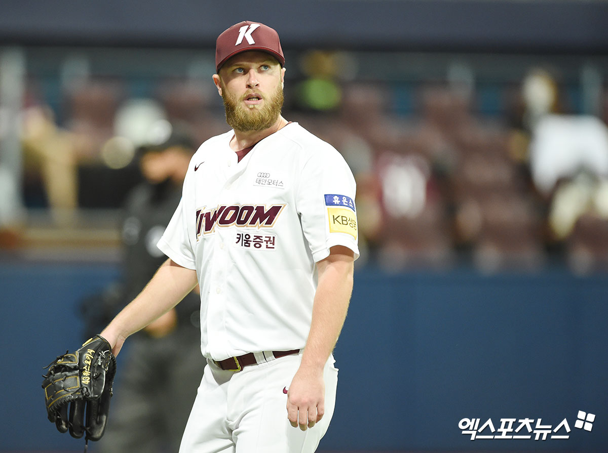 [엑스포츠뉴스 고척, 김한준 기자] 8일 오후 서울 구로구 고척스카이돔에서 열린 ‘2020 신한은행 SOL KBO리그’ LG 트윈스와 키움 히어로즈의 경기, 3회초 수비를 마친 키움 선발투수 요키시가 더그아웃으로 향하고 있다.