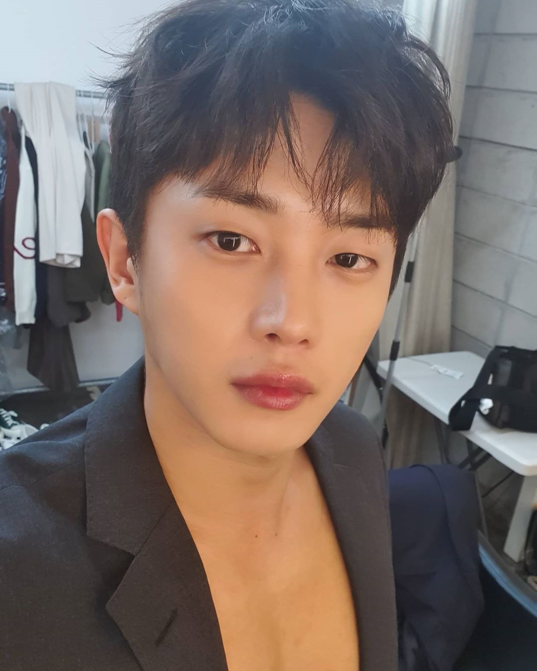 11일 김민석은 자신의 인스타그램에 "전역 후 첫 스케줄 중 #셀카"라는 글귀와 함께 사진을 게재했다.