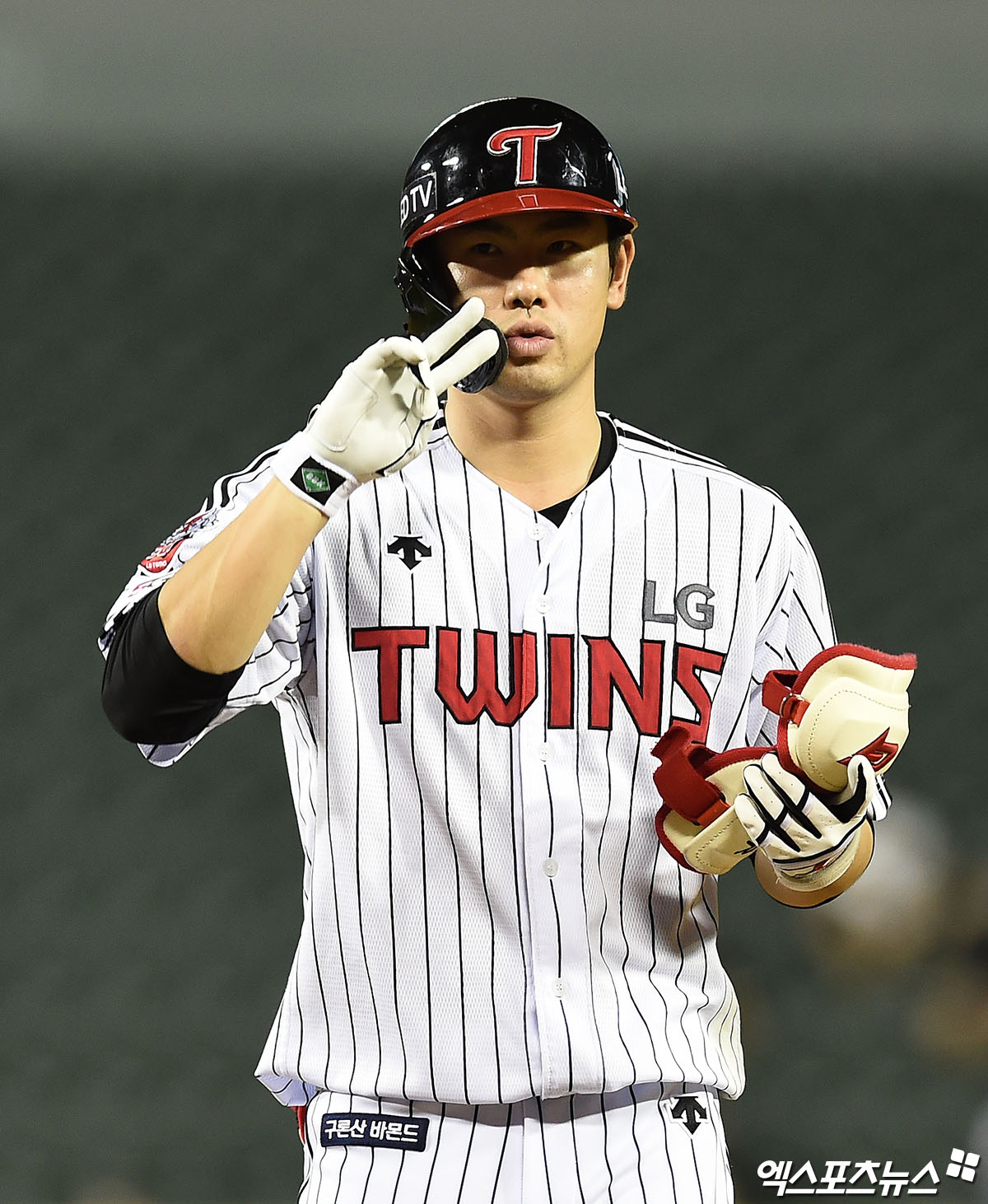 [엑스포츠뉴스 잠실, 박지영 기자] 12일 오후 서울 송파구 잠실야구장에서 열린 '2020 신한은행 SOL KBO리그' KIA 타이거즈와 LG 트윈스의 경기, 7회말 2사 1루 LG 홍창기가 안타를 때려낸 뒤 세리머니를 하고 있다.