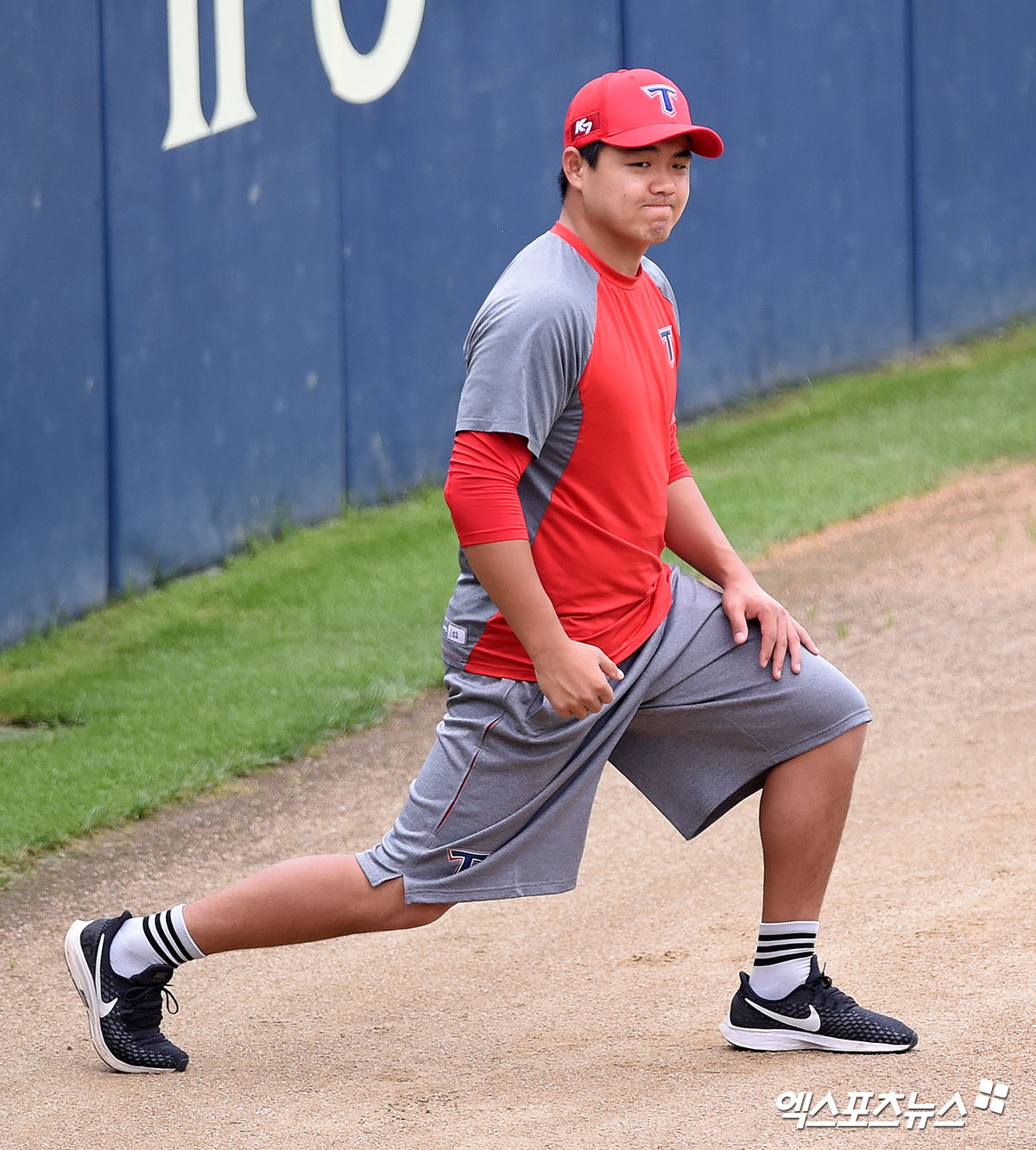 KIA 장현식 '가볍게 스트레칭부터'[포토]