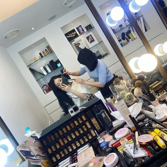 공개된 사진 속 소연은 메이크업을 받는 모습을 거울 셀카로 담아 한창 물오른 미모를 뽐내고 있다.