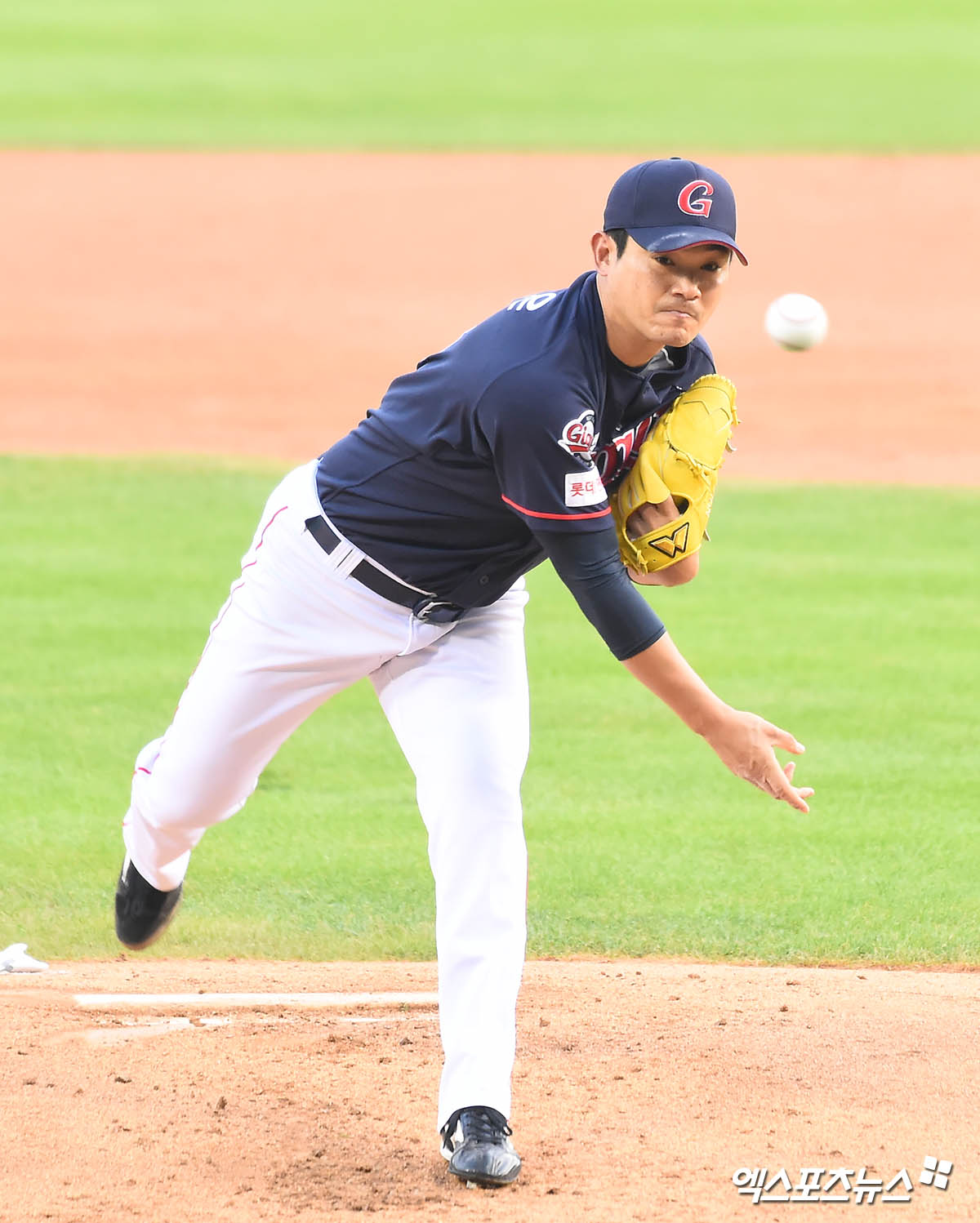 [엑스포츠뉴스 잠실, 윤다희 기자] 21일 오후 서울 송파구 잠실야구장에서 열린 ‘2020 신한은행 SOL KBO 리그’ 롯데 자이언츠와 두산 베어스의 경기, 1회말 롯데 선발투수 노경은이 역투하고 있다.