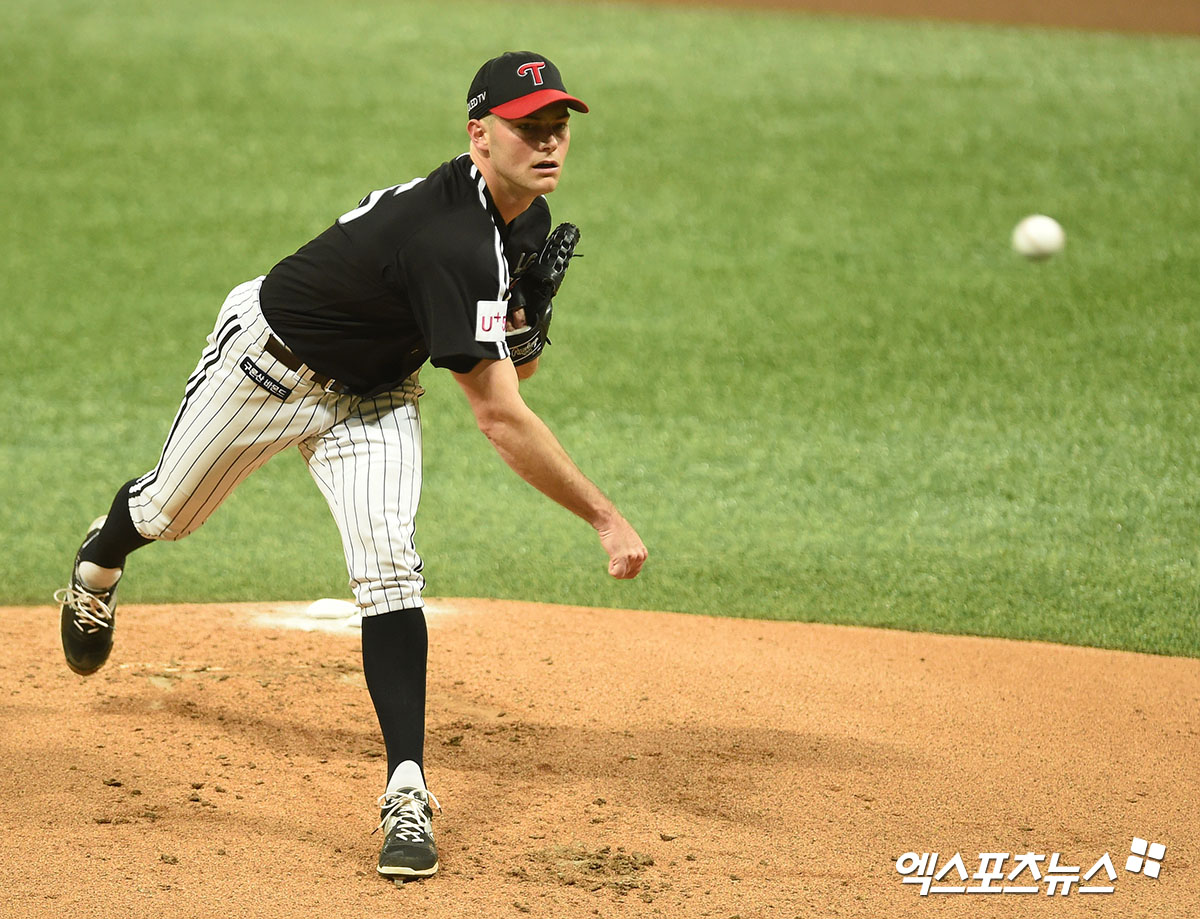 [엑스포츠뉴스 고척, 김한준 기자] 21일 오후 서울 구로구 고척스카이돔에서 열린 ‘2020 신한은행 SOL KBO 리그’ LG 트윈스와 키움 히어로즈의 경기, 1회말 LG 선발투수 윌슨이 공을 힘차게 던지고 있다.