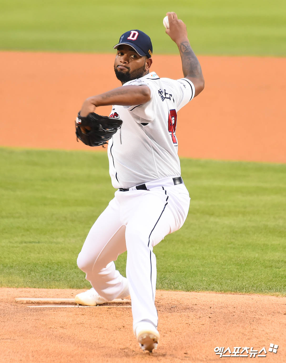 [엑스포츠뉴스 잠실, 윤다희 기자] 26일 오후 서울 송파구 잠실야구장에서 열린 ‘2020 신한은행 SOL KBO 리그’ KIA 타이거즈와 두산 베어스의 경기, 1회초 두산 선발투수 알칸타라가 역투하고 있다.