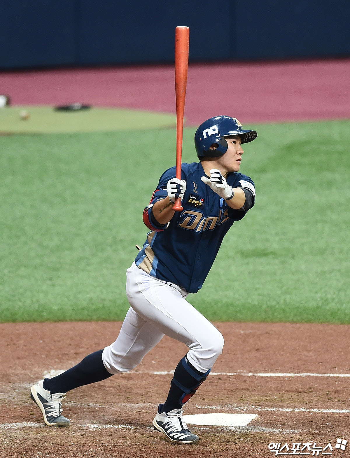 [엑스포츠뉴스 고척, 박지영 기자] 2일 오후 서울 구로구 고척스카이돔에서 열린'2020 신한은행 SOL KBO리그' NC 다이노스와 키움 히어로즈의 경기, 5회초 2사 NC 박민우가 2루타를 때려내고 있다.