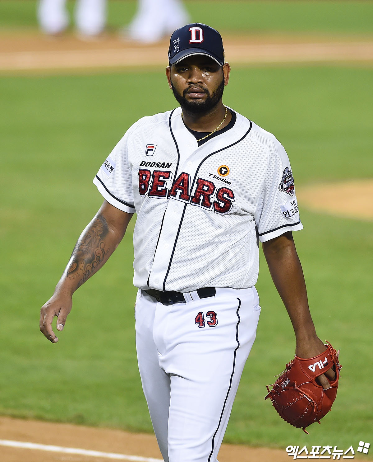 [엑스포츠뉴스 잠실, 박지영 기자] 8일 오후 서울 송파구 잠실야구장에서 열린 '2020 신한은행 SOL KBO리그' KT 위즈와 두산 베어스의 경기, 2회초 종료 후 두산 선발투수 알칸타라가 더그아웃으로 향하고 있다.