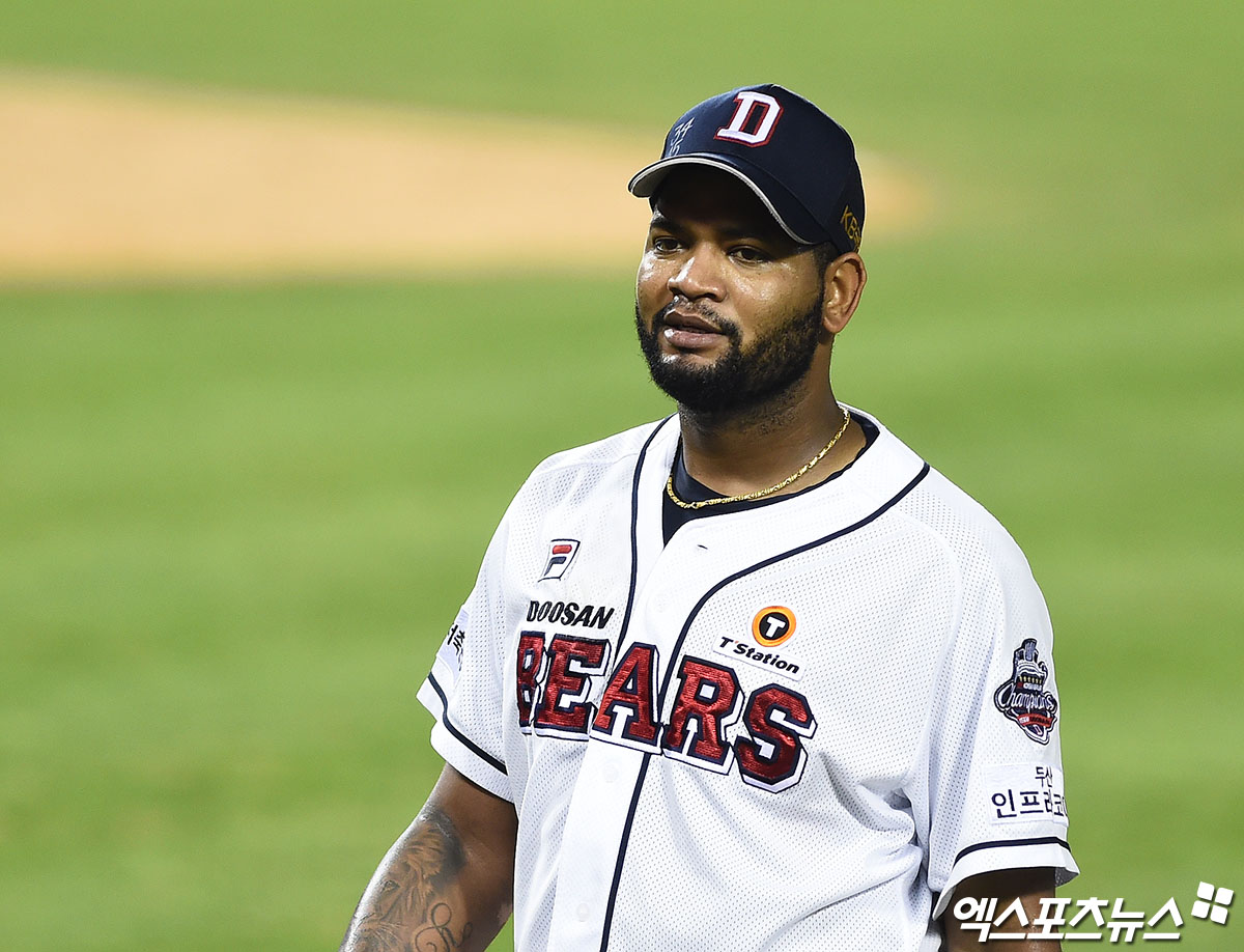 [엑스포츠뉴스 잠실, 박지영 기자] 8일 오후 서울 송파구 잠실야구장에서 열린 '2020 신한은행 SOL KBO리그' KT 위즈와 두산 베어스의 경기, 6회초 종료 후 두산 선발투수 알칸타라가 미소 지으며 더그아웃으로 향하고 있다.
