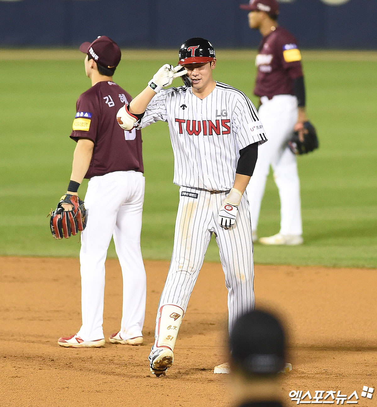 [엑스포츠뉴스 잠실, 박지영 기자] 10일 오후 서울 송파구 잠실야구장에서 열린 '2020 신한은행 SOL KBO리그' 키움 히어로즈와 LG 트윈스의 경기, 7회말 무사 LG 선두타자 홍창기가 2루타를 때려내고 있다.