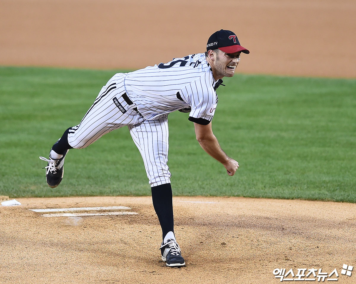 [엑스포츠뉴스 잠실, 박지영 기자] 11일 오후 서울 송파구 잠실야구장에서 열린 '2020 신한은행 SOL KBO리그' 키움 히어로즈와 LG 트윈스의 경기, 1회초 LG 선발투수 윌슨이 역투하고 있다.