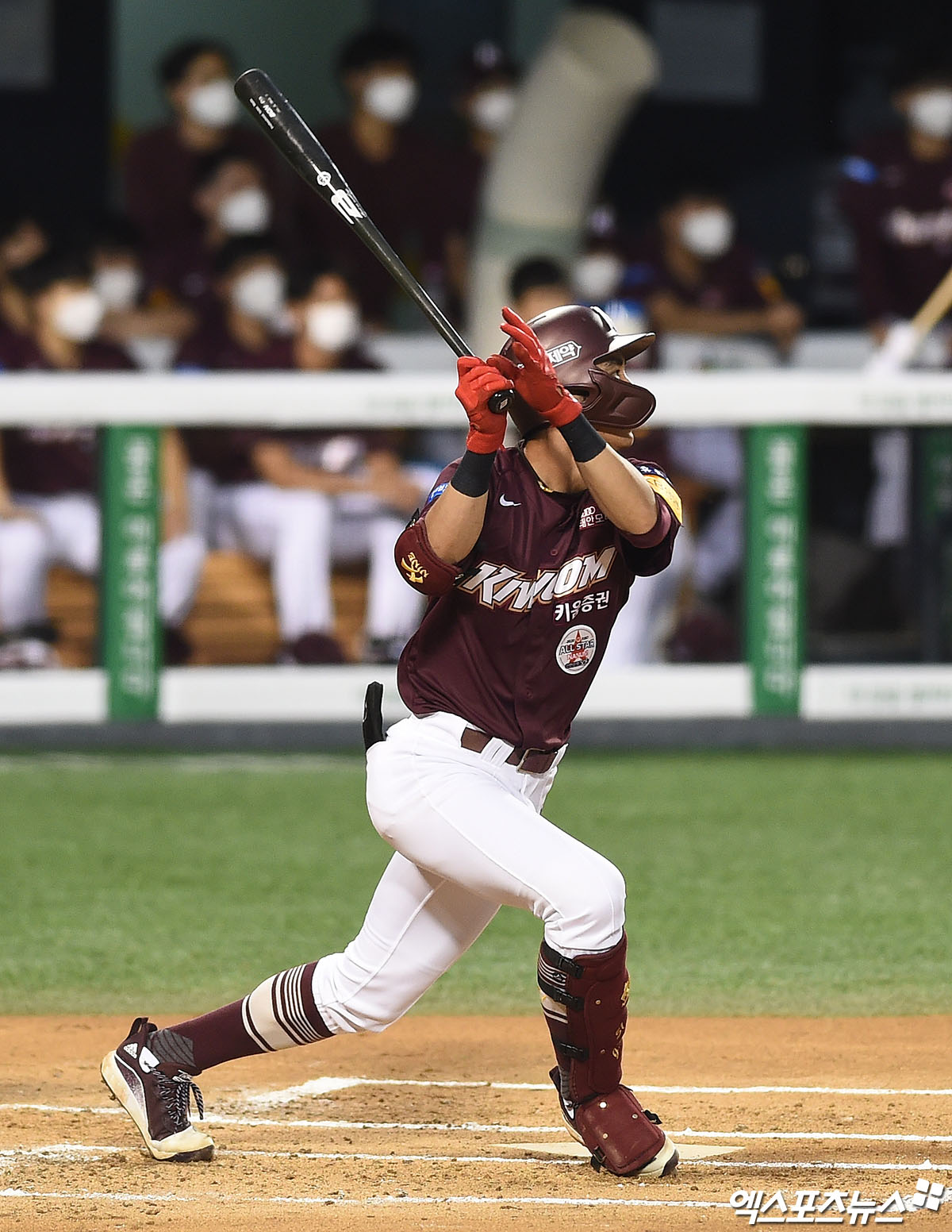 [엑스포츠뉴스 잠실, 박지영 기자] 11일 오후 서울 송파구 잠실야구장에서 열린 '2020 신한은행 SOL KBO리그' 키움 히어로즈와 LG 트윈스의 경기, 2회초 무사 키움 선두타자 이정후가 안타를 때려내고 있다.