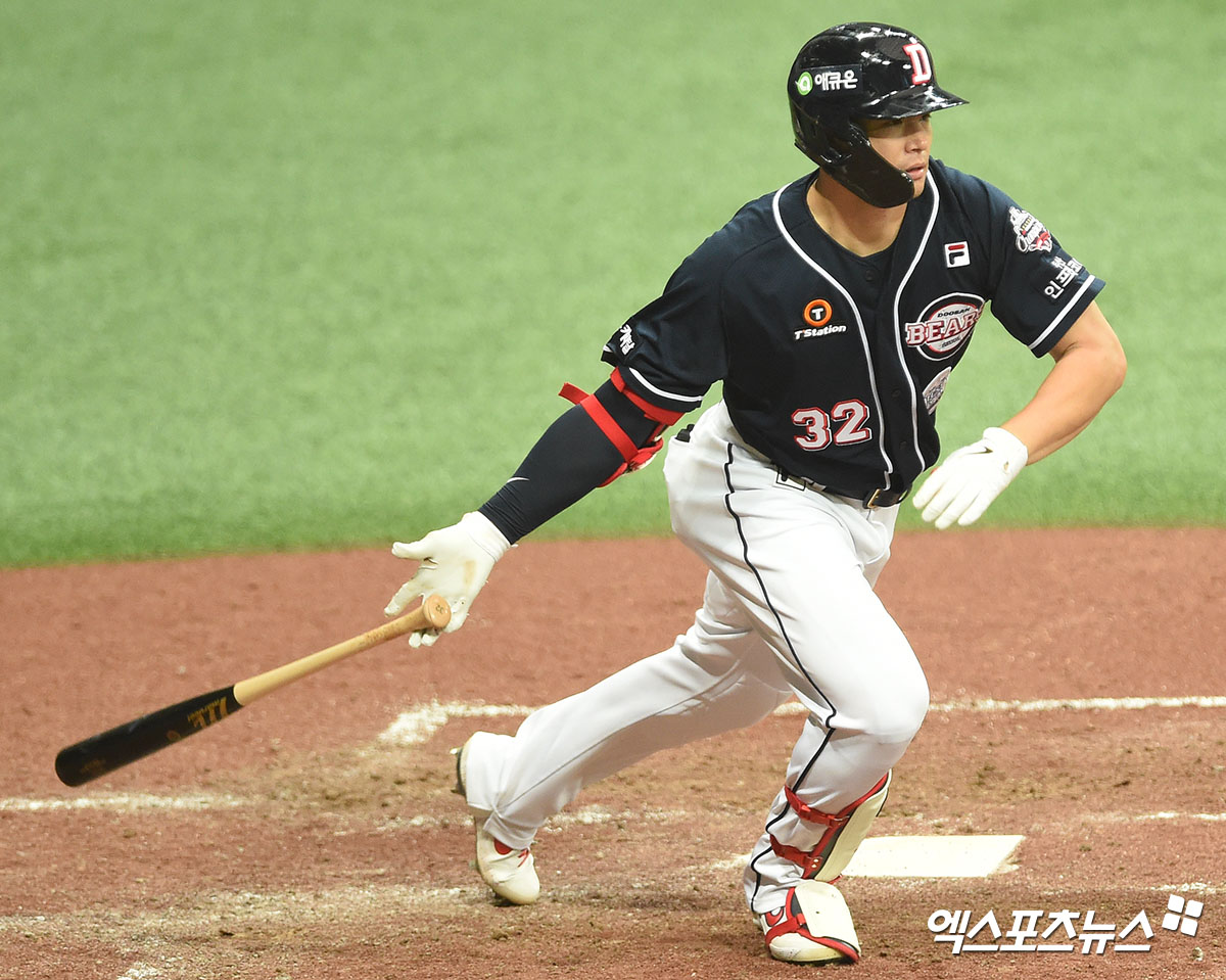 [엑스포츠뉴스 고척, 김한준 기자] 13일 오후 서울 구로구 고척스카이돔에서 열린 ‘2020 신한은행 SOL KBO 리그’ 두산 베어스와 키움 히어로즈의 경기, 5회초 두산 김재환이 타격을 하고 있다.