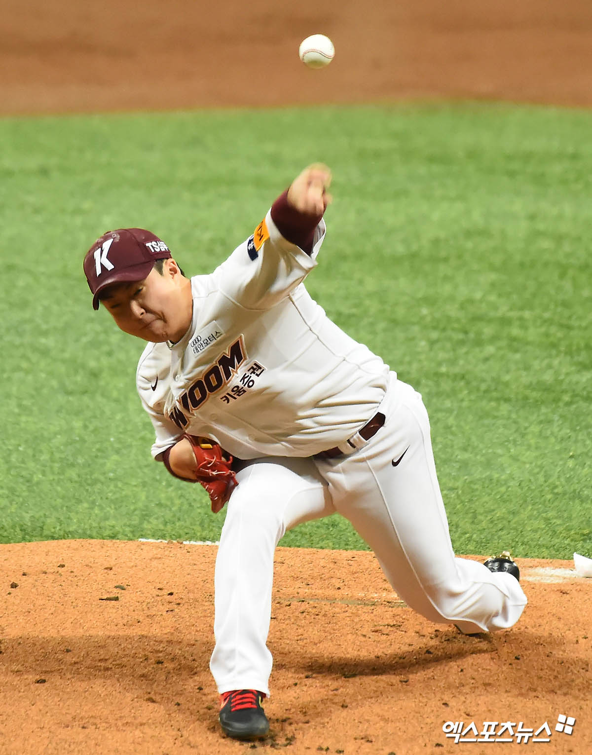 [엑스포츠뉴스 고척, 윤다희 기자] 15일 오후 서울 구로구 고척스카이돔에서 열린 ‘2020 신한은행 SOL KBO 리그’ 롯데 자이언츠와 키움 히어로즈의 경기, 1회초 키움 선발투수 김재웅이 역투하고 있다.
