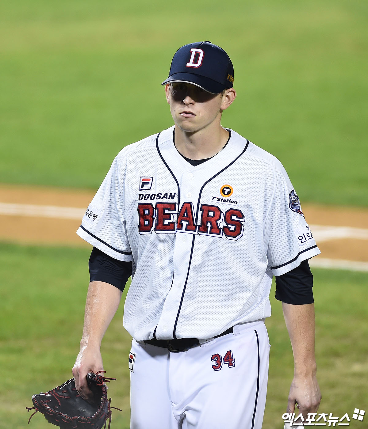 [엑스포츠뉴스 잠실, 박지영 기자] 16일 오후 서울 송파구 잠실야구장에서 열린 '2020 신한은행 SOL KBO리그' NC 다이노스와 두산 베어스의 경기, 4회초 종료 후 두산 선발투수 플렉센이 더그아웃으로 향하고 있다.