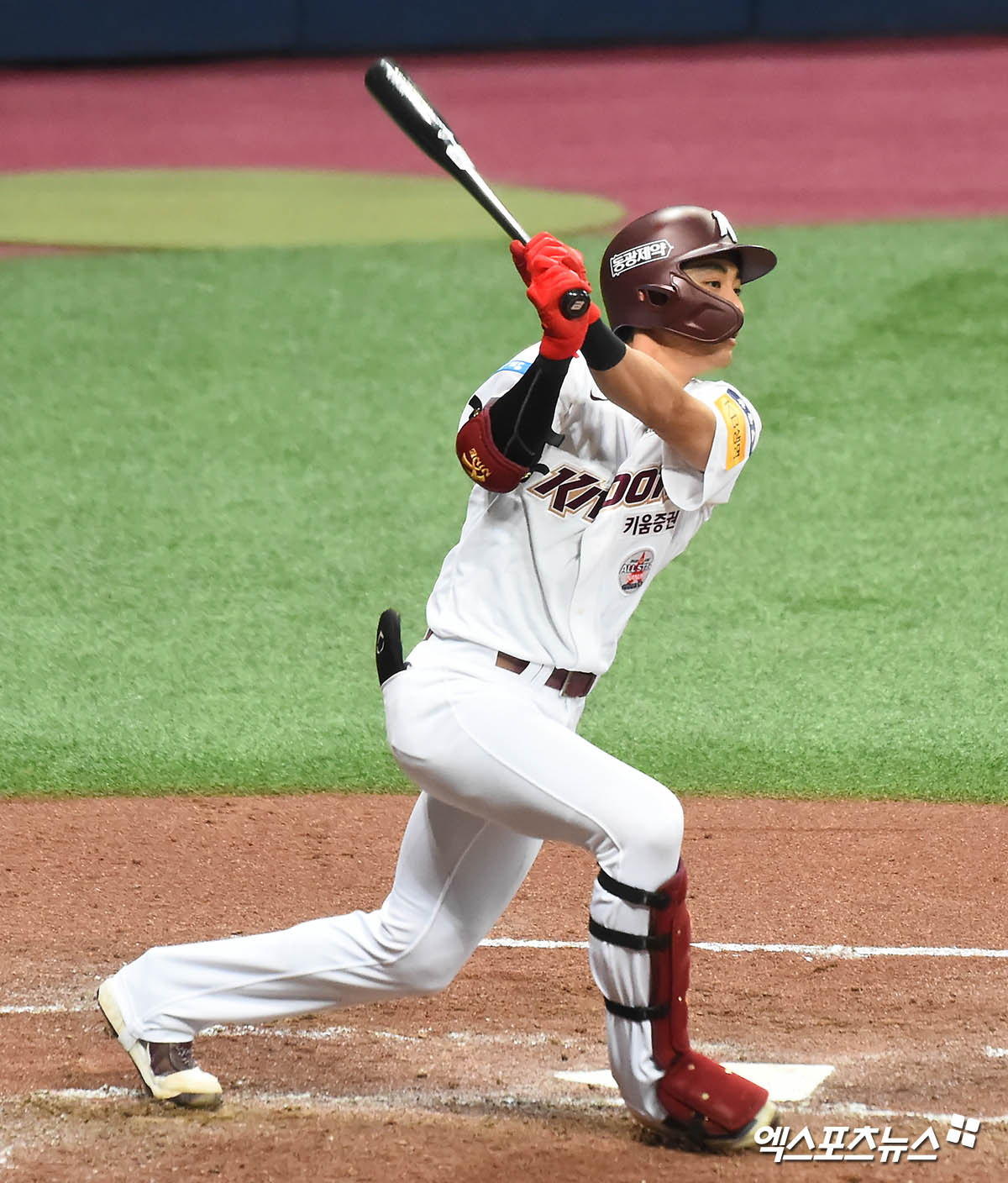 [엑스포츠뉴스 고척, 윤다희 기자] 17일 오후 서울 구로구 고척스카이돔에서 열린 ‘2020 신한은행 SOL KBO 리그’ 한화 이글스와 키움 히어로즈의 경기, 4회말 무사 1,2루 키움 이정후가 1타점 적시타를 날리고 있다.