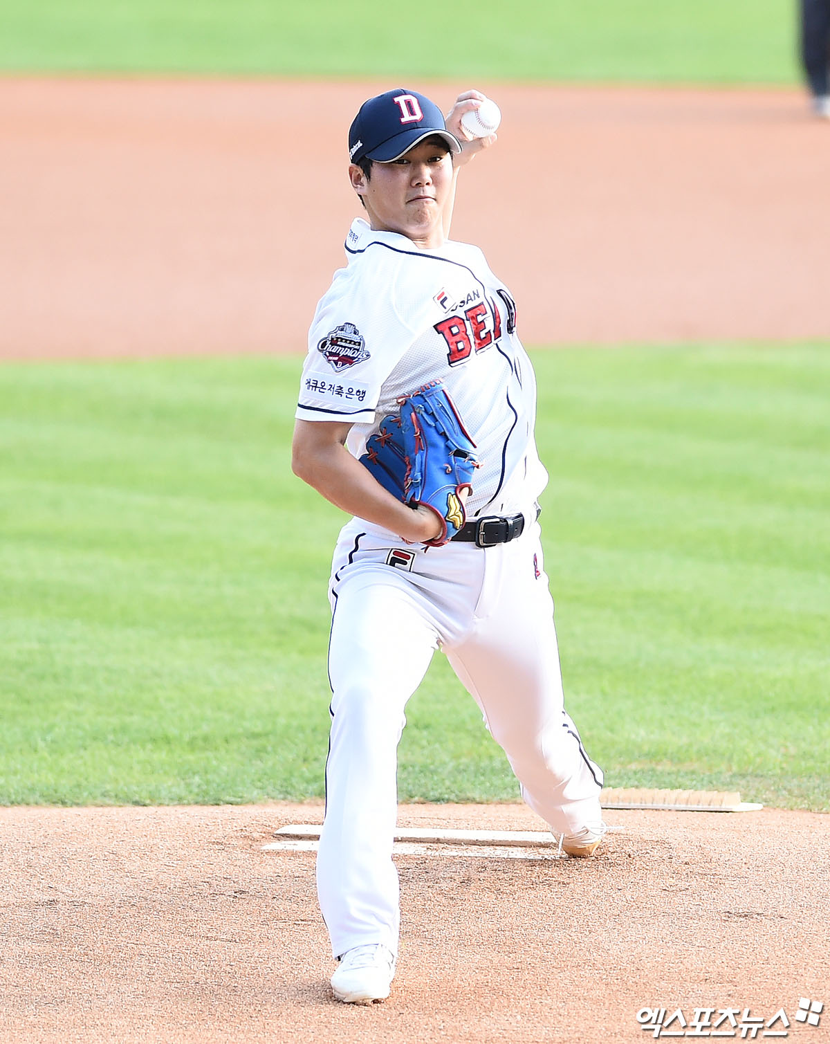 [엑스포츠뉴스 잠실, 박지영 기자] 18일 오후 서울 송파구 잠실야구장에서 열린 '2020 신한은행 SOL KBO리그' LG 트윈스와 두산 베어스의 경기, 1회초 두산 선발투수 함덕주가 역투하고 있다.