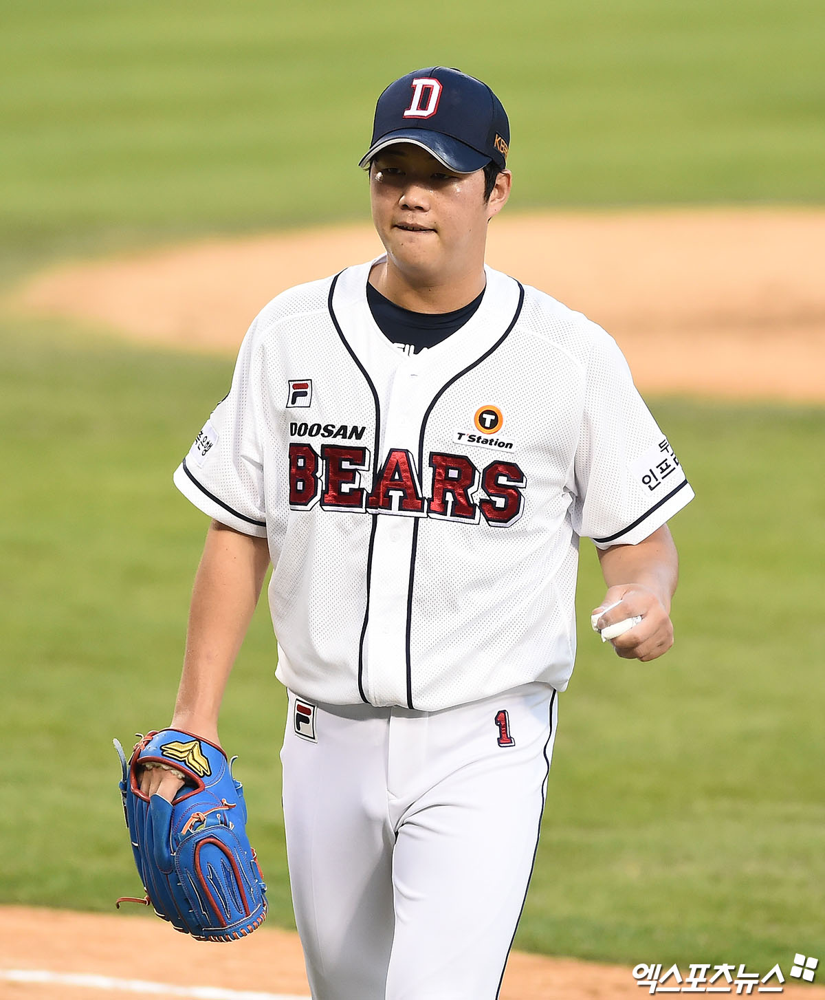 [엑스포츠뉴스 잠실, 박지영 기자] 19일 오후 서울 송파구 잠실야구장에서 열린 '2020 신한은행 SOL KBO리그' LG 트윈스와 두산 베어스의 경기, 4회초 종료 후 두산 선발투수 함덕주가 더그아웃으로 향하고 있다.