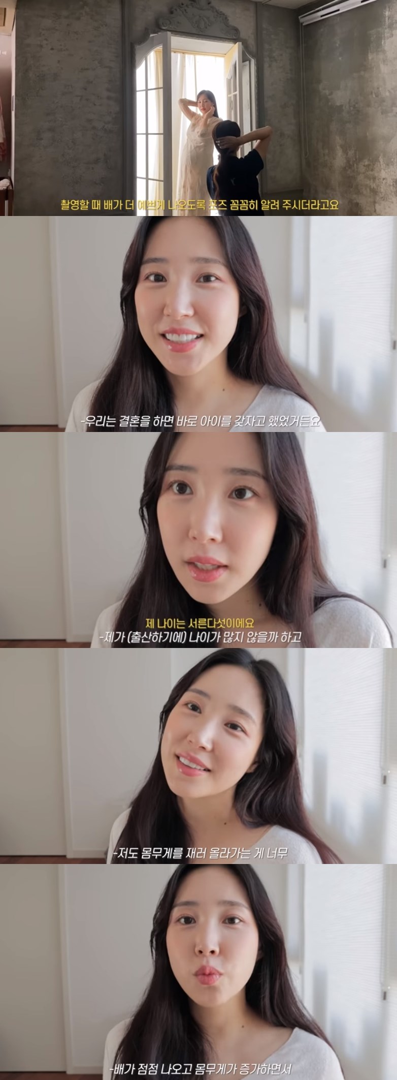 먼저 그는 "아기는 결혼 준비 중에 찾아왔다. 남편이랑 결혼하면 바로 아기를 갖자고 계획을 세웠지만 준비 기간에 바로 생길 줄은 몰랐다. 결혼식을 한 달 앞두고 임신을 알게 됐다"며 임신을 알게 됐을 때를 떠올렸다.