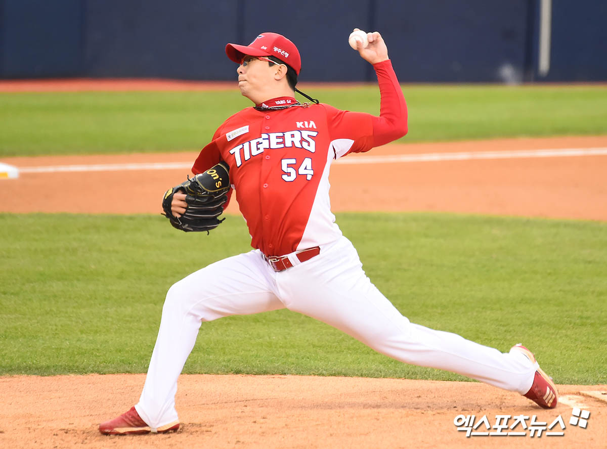 [엑스포츠뉴스 잠실, 윤다희 기자] 2일 오후 서울 송파구 잠실야구장에서 열린 ‘2020 신한은행 SOL KBO 리그’ KIA 타이거즈와 두산 베어스의 경기, 1회말 KIA 선발투수 양현종이 역투하고 있다.