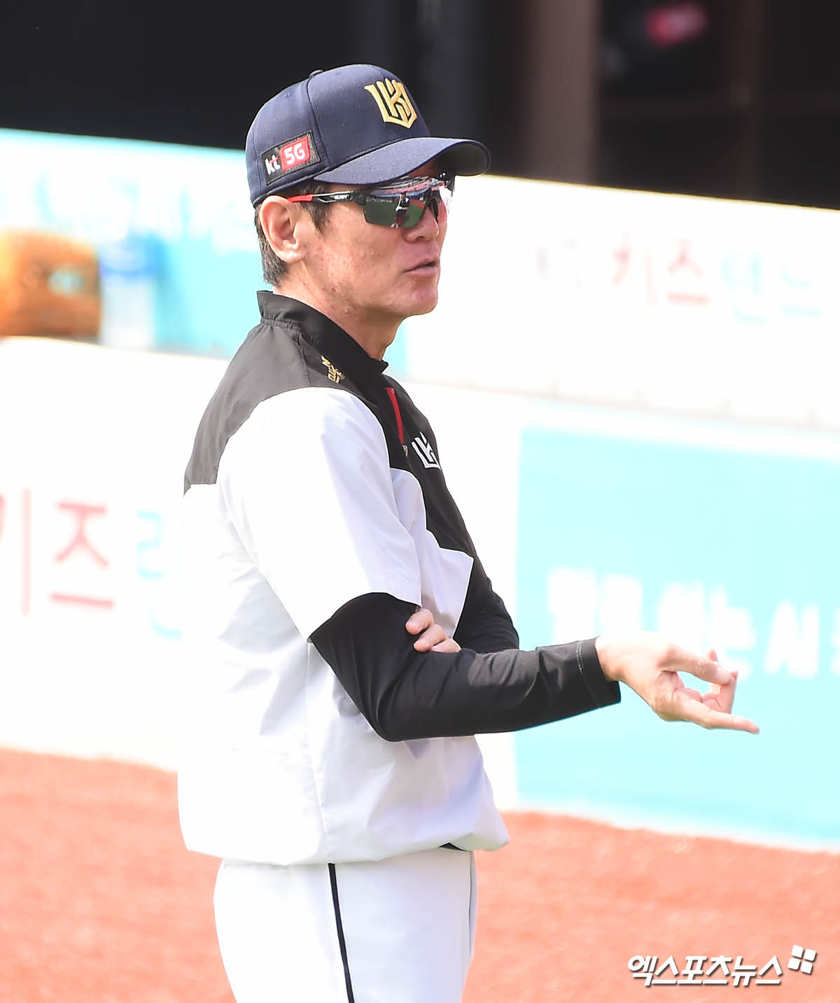 [엑스포츠뉴스 수원, 윤다희 기자] 3일 오후 수원kt위즈파크에서 열리는 ‘2020 신한은행 SOL KBO 리그’ LG 트윈스와 kt 위즈의 더블헤더 1차전 경기에 앞서 kt 이강철 감독이 훈련에 참석했다.