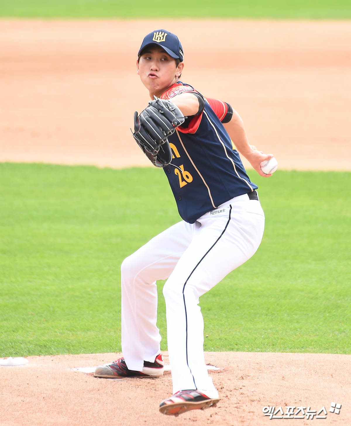 [엑스포츠뉴스 수원, 윤다희 기자] 3일 오후 수원kt위즈파크에서 열린 ‘2020 신한은행 SOL KBO 리그’ LG 트윈스와 kt 위즈의 더블헤더 1차전 경기, 1회초 kt 선발투수 김민수가 역투하고 있다.
