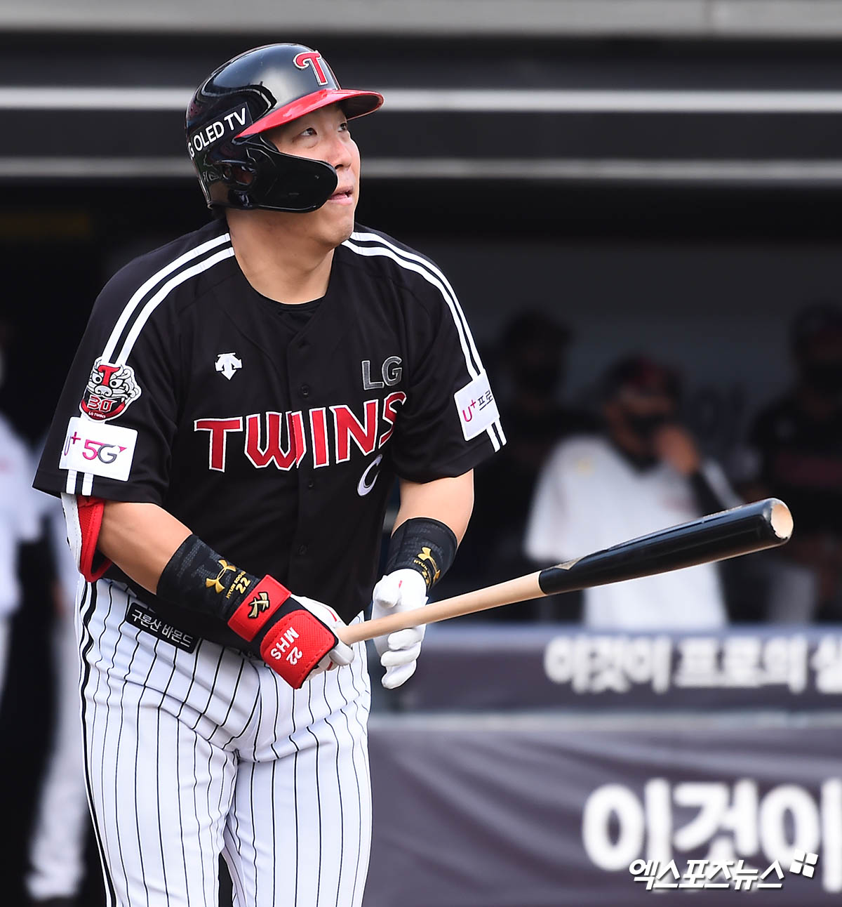 [엑스포츠뉴스 수원, 윤다희 기자] 3일 오후 수원kt위즈파크에서 열린 ‘2020 신한은행 SOL KBO 리그’ LG 트윈스와 kt 위즈의 더블헤더 1차전 경기, 7회초 1사 만루 LG 김현수가 1타점 희생플라이를 날리고 있다.