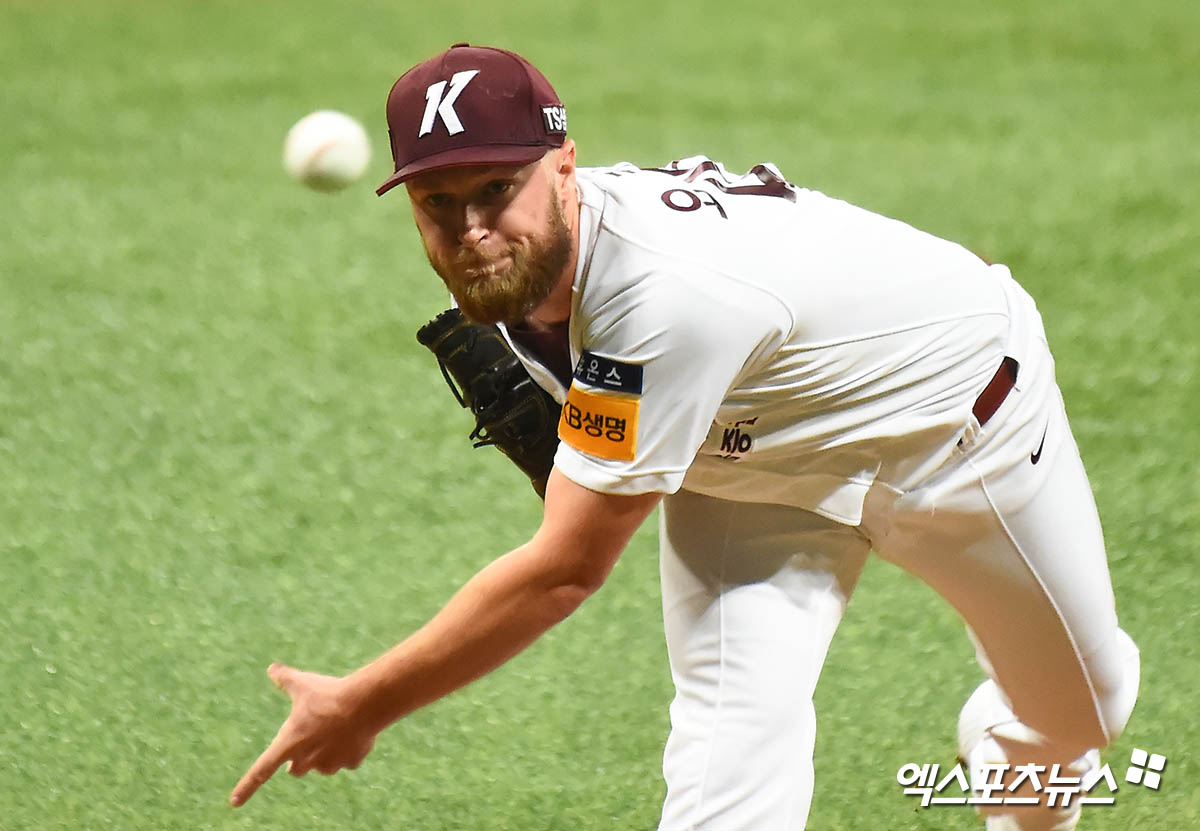 ​[엑스포츠뉴스 고척, 윤다희 기자] 6일 오후 서울 구로구 고척스카이돔에서 열린 ‘2020 신한은행 SOL KBO 리그’ NC 다이노스와 키움 히어로즈의 경기, 1회초 키움 선발투수 요키시가 역투하고 있다.