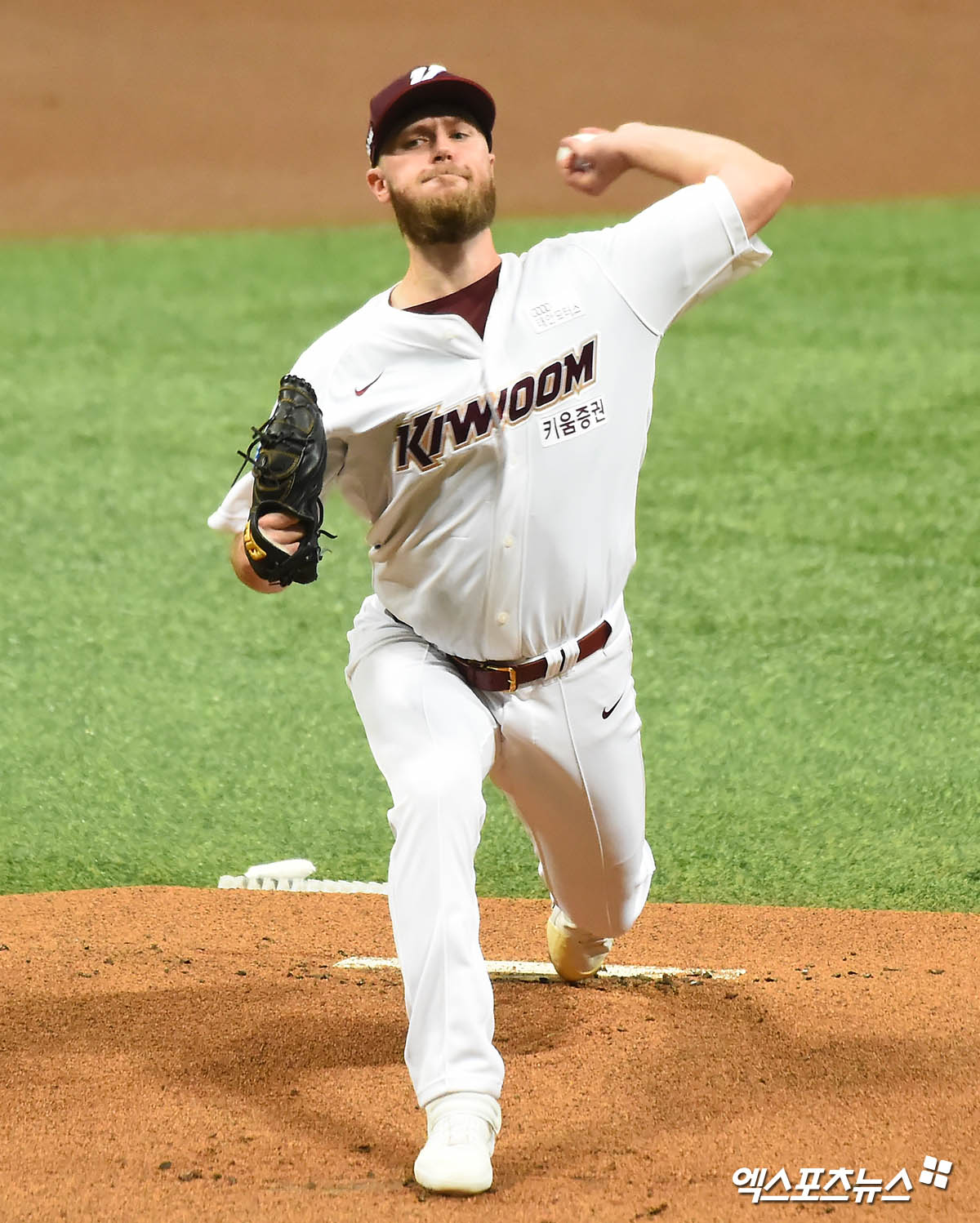 ​[엑스포츠뉴스 고척, 윤다희 기자] 6일 오후 서울 구로구 고척스카이돔에서 열린 ‘2020 신한은행 SOL KBO 리그’ NC 다이노스와 키움 히어로즈의 경기, 1회초 키움 선발투수 요키시가 역투하고 있다.