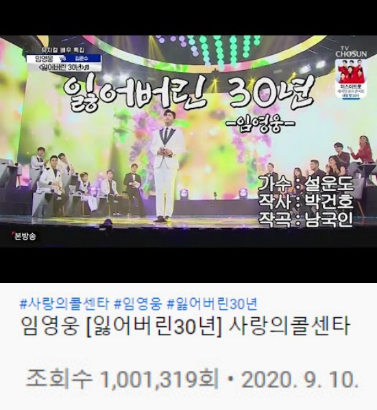 임영웅의 ‘잃어버린 30년’ 열창 영상이 조회수 100만뷰를 넘어섰다.