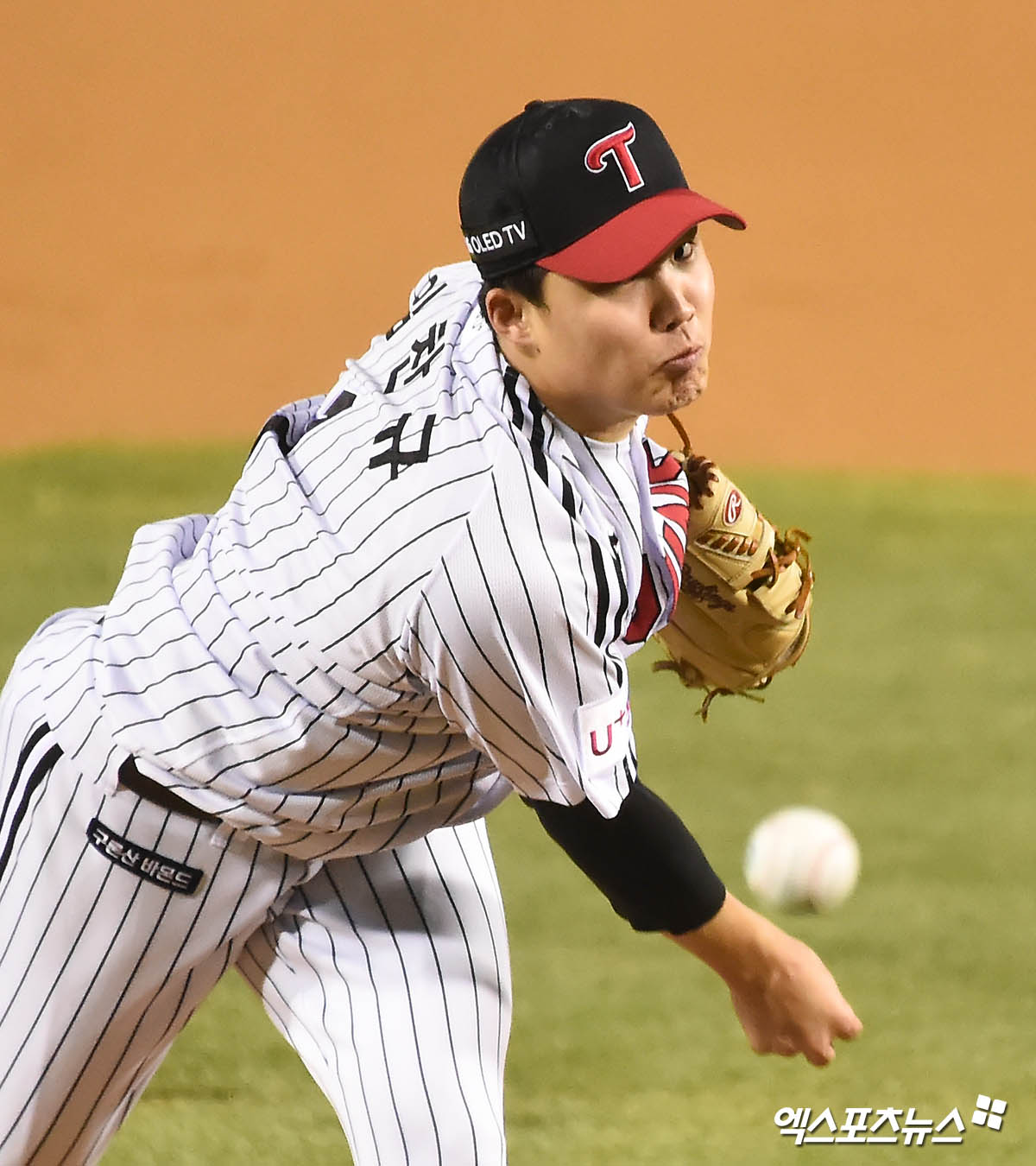 ​[엑스포츠뉴스 잠실, 윤다희 기자] 7일 오후 서울 송파구 잠실야구장에서 열린 ‘2020 신한은행 SOL KBO 리그’ 삼성 라이온즈와 LG 트윈스의 경기, 1회초 LG 선발투수 임찬규가 역투하고 있다.