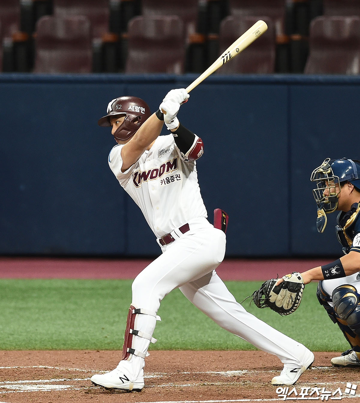 [엑스포츠뉴스 고척, 박지영 기자] 8일 오후 서울 구로구 고척스카이돔에서 열린 '2020 신한은행 MY CAR KBO리그' NC 다이노스와 키움 히어로즈의 경기, 2회말 2사 1,3루 키움 김하성이 1타점 적시타를 때려내고 있다.