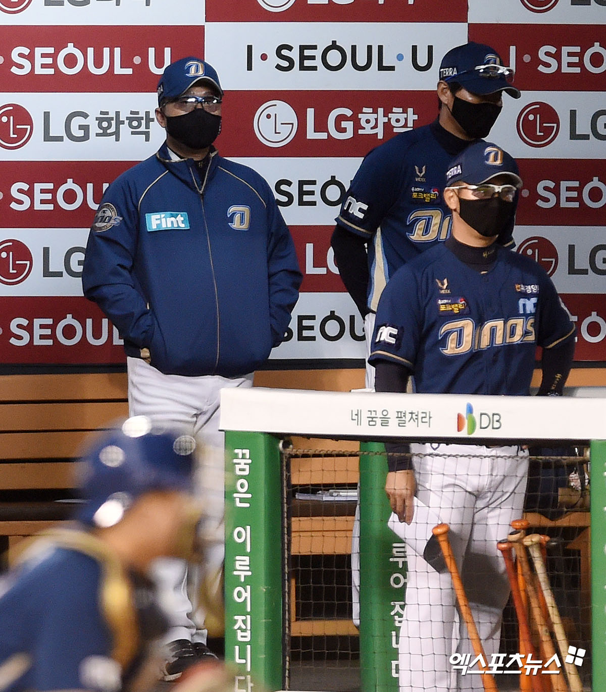[엑스포츠뉴스 잠실, 김한준 기자] 10일 오후 서울 송파구 잠실야구장에서 열린 ‘2020 신한은행 SOL KBO 리그’ NC 다이노스와 LG 트윈스의 경기, NC 이동욱 감독이 경기를 지켜보고 있다.
