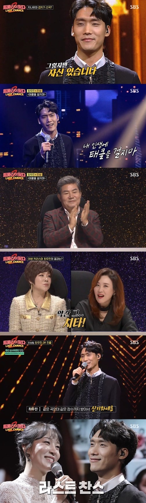 앞서 지나유가 87%라는 높은 점수로 통과했음에도 불구하고, 같은 곡을 선곡한 최우진 역시 강한 자신감을 가지고 무대에 올랐다. 이어 시작된 최우진의 노래는 그의 자신감을 단번에 납득시켰다. 모두와 함께 호흡한 그의 무대는 주현미로부터 "경연으로 시작했지만 공연으로 와닿은 무대"라는 극찬을 받았다. 이에 최우진 역시 지나유와 같은 87%의 점수로 3라운드에 진출했다. 이 장면에서는 분당 최고 시청률이 12%까지 오르며 최고의 1분을 차지했다.
