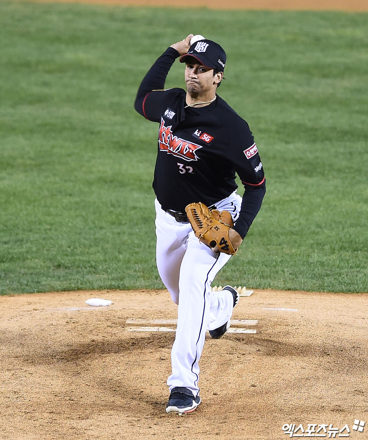 [엑스포츠뉴스 잠실, 박지영 기자] 22일 오후 서울 송파구 잠실야구장에서 열린 '2020 신한은행 SOL KBO리그' KT 위즈와 두산 베어스의 경기, 1회말 KT 선발투수 쿠에바스가 역투하고 있다.